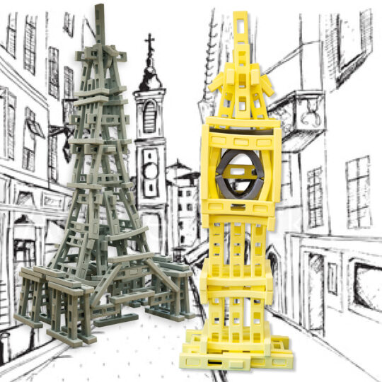 Klocki po spakowaniu zajmują niewiele miejsca. Jednak podczas zabawy można wznosić z nich stabilne budowle sięgające sufitu!